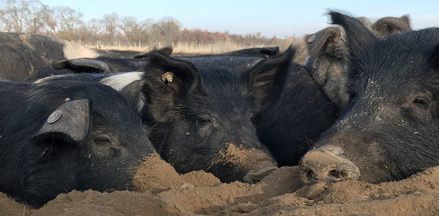 200 Hektar Weidelandschaft, durchzogen von Hecken und Bäumen: Dam- und Rotwild, Mufflons, Schafe sowie Schweine leben hier ganzjährig an der frischen Luft. Zahlreiche Bienenvölker auch. Auf 400 Hektar Ackerland wird Bio-Futter für die Tiere angebaut.