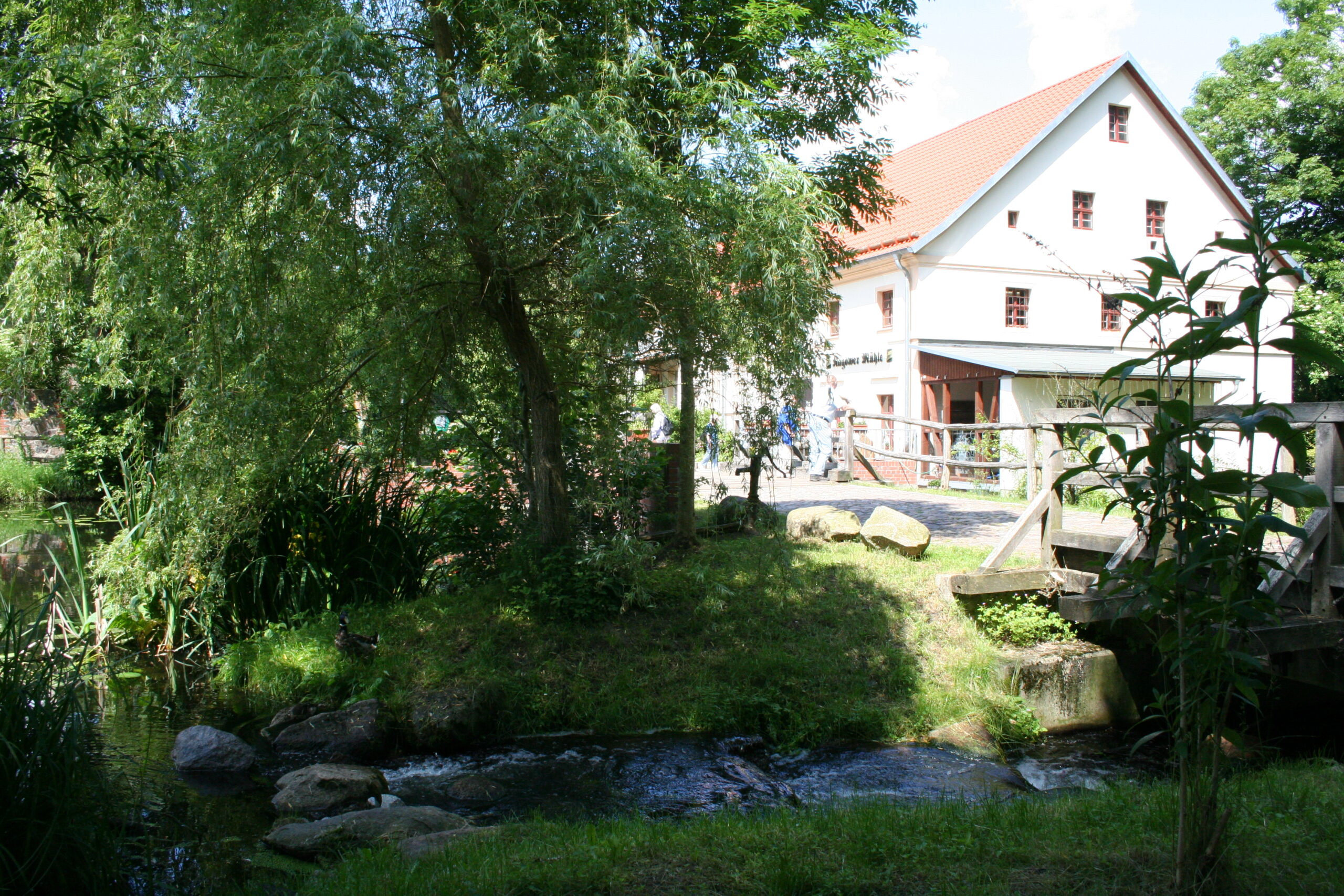 Betrieben von Familie Börner kann man hier vom 1. April bis 20. Dezember, Donnerstag-Sonntag, von 10.00-17.00 Uhr einkehren und der rauschenden klaren Schlaube lauschen. Sie ist ein beliebtes Ausflugziel und Wanderrastpunkt. Ein kleines Museum veranschaulicht die Geschichte der Wassermühle, die einst eine Ölmühle und ein Sägewerk betrieb. Bevor Sie vor verschlossenen Türen stehen, empfiehlt es sich vorher anzurufen.